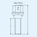 Šrouby na alu kola a plechové disky M12x1,5x22mm kužel 60° dosedací plocha. Délka závitu (H) 22mm. Klíč (HEX) 19. Pevnost šroubu 10.9. Pozinkované.
