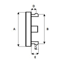 Dotaz k produktuStředové krytky do alu kol D04 vnější průměr A 52,4mm B 48,3mm C 3,0mm D 4,5mm E 6,5mm